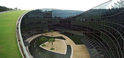 m Singapura, a Universidade de de Tecnologia e Design ostenta essa cobertura com a vegetação combinado com as curvas, os espaços cheios e vazios da construção e a inclinação suave da cobertura, com o intuito de criar a impressão de que o prédio e a paisagem do entorno se misturam.