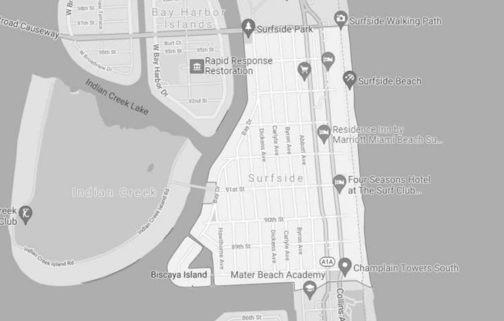 Primeiramente é necessário entender a localização geológica do lugar, Figura 2, Surfside é cercado pelo mar e, como toda região litorânea, possui alto risco de deterioração em função do alto nível de agressividade ambiental. Provavelmente possui um solo composto de argila marinha e areia, material que se expande na presença de umidade e contrai-se ao secar. Além disso é importante lembrar que o solo se comporta como uma grande esponja (Canal da engenharia, 2021b ). Miami Beach foi construída em cima de uma ilha-barreira, um pedaço de terra natural paralelo à costa. Algumas características das ilhas-barreira é que são terras frágeis e composta por solos arenosos e erosivos, sujeitas ao impacto das ondas do mar e aos efeitos naturais, podendo se mover, sofrer erosão, crescimento e encolhimento, segundo o Escritório Nacional de Administração Oceânica e Atmosférica dos Estados Unidos (NOAA) (BBC News Mundo. 2021).