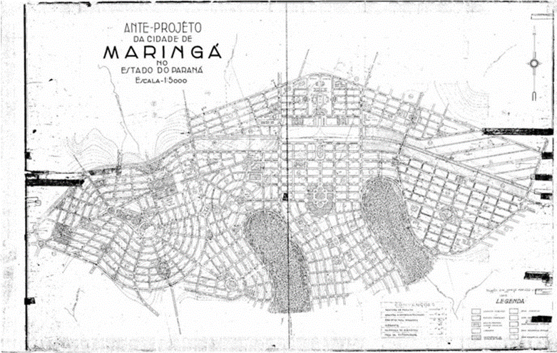 Figura 03: Anteprojeto da cidade de Maringá, elaborado pelo Eng. Jorge de Macedo Vieira na década de 1940