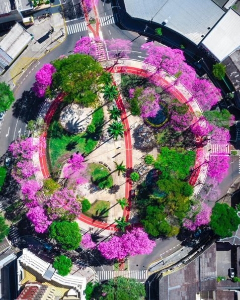 Figura 05: Vista aérea da Praça Rocha Pombo, localizada no encontro das avenidas Brasil e Pedro Taques