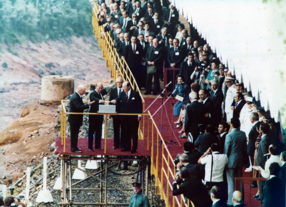 No dia 5 de novembro de 1982, os presidentes João Figueiredo e Alfredo Stroessner, presidente do Brasil e do Paraguai, inauguraram oficialmente a usina, ao abrir as 14 comportas do vertedouro. Tendo início na produção de energia na primeira unidade geradora no dia 5 de maio de 1984 e a venda teve início em 1 de março de 1985.